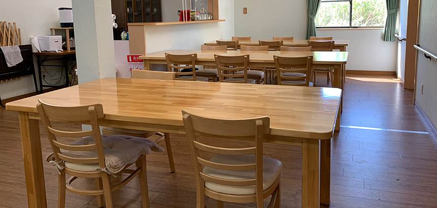 ごあいさつ グループホーム 施設紹介 施設概要 よくあるご質問 採用情報 HOME 施設紹介 施設紹介 施設の間取図 障がいをお持ちの方々が、共同生活を通じて自立した生活を過ごせるように、相談員・世話人を配置して食事の世話、金銭、出納など生活援助体制を整えた施設をグループホームといいます。 施設の案内 小高い丘の上に建っていて見晴らしは良く静かなところです。 当施設はすべて個室でプライバシーに配慮しています。 吹抜けのあるゆったりとした食堂。ご利用者の憩いの場です。 オープンテラスがあります。ゆったりとお茶を楽しめます。 スタッフ紹介 当施設の特徴